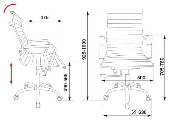 Высота с подлокотниками: 705-780