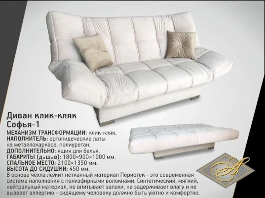 Клик Кляк Софья-1 (Асмана) - за 51 682 руб. в Электростали. Купите на сайте elektrostal.onlinemarketmebeli.ru или по телефону 8(800)505-30-63 уже сегодня! Уточнить наличие, комплектацию, актуальную цену можно бесплатно у менеджера ежедневно. Закажите Клик Кляк Софья-1 (Асмана) до конца акции! Доступна покупка в кредит, рассрочку. Доставим со склада или на заказ.