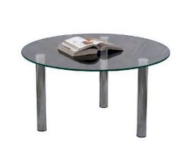 Журнальный стол - стеклянная круглая столешница, ножки металлические с фетровыми подпятниками.