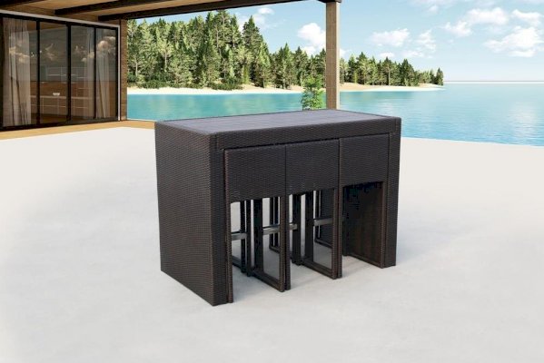 В составе комплекта: высокий барный стол со столешницей из декинга и 6 барных стульев с подушками. Высококачественная лоза из полиротанга стойкая к любым атмосферным явлениям. Крепкий стальной каркас с полимерным антивандальным покрытием и отличным качеством сварки. Изделие сплетено вручную нашими мастерами под жестким контролем качества на каждом этапе производства. Лоза максимально приближена по рельефу и текстуре к естественному материалу. Идеально подходит для использования на улице и внутри помещения в любую погоду. Не боится воды, солнца и минусовой температуры.