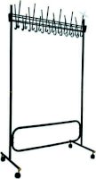 Вешалка выполнена из оцинкованной стали с полимерным покрытием. Крючки вешалки выполнены из трубы диаметром 10 мм. Вешалка поставляется в разобранном виде, в картонной таре. Эта модель вешалки может использоваться как фрагмент для обустройства гардеробных комнат.