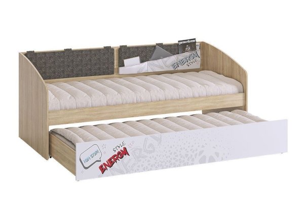Дополнительное удобное спальное место или большой выдвижной ящик для хранения постельного белья и игрушек, на выбор, решать вам. Стильный принтерный рисунок на фасаде, и карманах. Чехлы подушек съемные, что позволит обеспечить чистоту и порядок. Детская «Энерджи» - это стильная, современная детская, которая понравится каждому ребенку. Рисунок устойчив к истиранию и ультрафиолету.