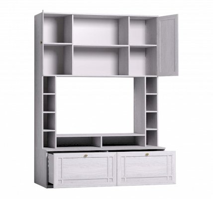 Легкие рамочные фасады модулей коллекции SHERLOCK декорированы переплетом из МДФ, что дополнительно подчеркивает строгость форм и классический стиль коллекции. Легкий и небольшой по габаритам Шкаф МЦН 1 вмещает телевизор диагональю до 44”: высота ниши 725 мм, ширина - 1154 мм. В боковых стеллажах храните декоративные интерьерные мелочи. Глубина нижних выдвижных ящиков - 400 мм. Они комплектуются шариковыми направляющими, которые обеспечивают им минимальный люфт и высокую прочность. Один ящик выдерживает нагрузку до 20 кг. Подставку Sherlock 17 можно закрепить над нишей, как дополнительные вместительные полки.