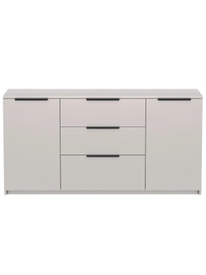 Наполнение: 3 выдвижных ящика + 2 распашные дверцы. За дверками расположено по 2 полки.