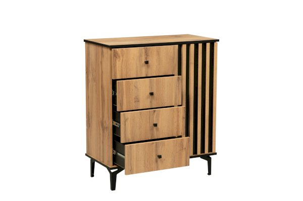 Комод – немного меньше модели 51.04, но сохранил тот же функционал. У него есть выдвижные ящики и полки для вещей за распашной дверцей.