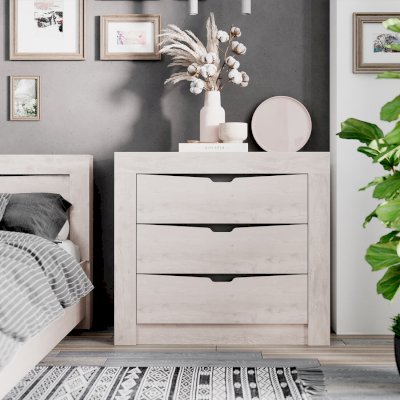 Элегантный комод «Леонардо» можно использовать как отдельно, так и в коллекции спального гарнитура. Удобная система хранения для одежды, пастельных принадлежностей или других хозяйственных аксессуаров состоит из трёх вместительных выдвижных ящиков на шариковых направляющих, которые обеспечивают легкую и бесшумную эксплуатацию модели.