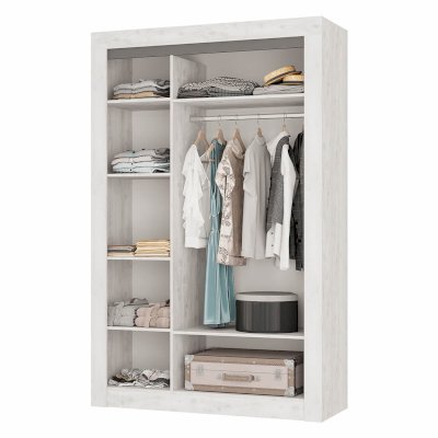 Трёхстворчатый распашной шкаф «Леонардо» с одной стороны имеет пять вместительных полок для белья, с другой стороны – удобную антресольную полку для хранения головных уборов, горизонтальную хромированную штангу для плечиков и нижнюю полку, в которой удобно хранить коробки с обувью. Особый шарм ему придаёт зеркало в полный рост, которое располагается на фасаде центральной створки. Сборка универсальна.