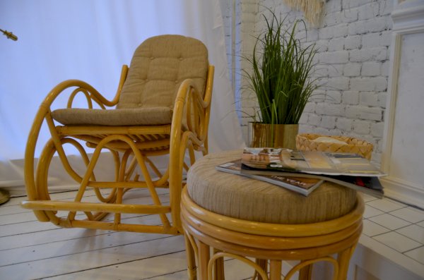 Кресло-качалка разборное из ротанга.