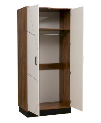 Что необходимо в любом жилом помещении? Конечно же, шкаф! Самая топовая модель – это одежный шкаф. Он подходит для любой комнаты и для любого члена семьи – ведь одежда есть у всех. Модуль – двухдверный, за распашными дверцами представлено единое пространство. Сверху – полка-антресоль из ЛДСП, которая выдерживает вес до 5 кг. Под полкой располагается металлическая штанга для вешалок. Высота шкафа позволяет развесить здесь весь гардероб – начиная от коротких рубашек и футболок и заканчивая длинными вечерними платьями в пол. Задняя стенка шкафа укреплена планкой из ЛДСП, которая обеспечивает дополнительную надежность конструкции.