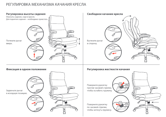 Тип механизма кресла: "топ-ган" качание с регулировкой под вес и фиксацией в 1 положении