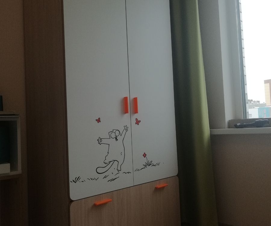 Пришёл в разобранном виде - упаковано отлично. При распаковке минимум запаха и стружки древесной. Сборка своими силами без проблем - все отверстия на месте, крепежа с запасом. Дверные петли с доводчиками, ящик без. В комплекте 2 набора ручек разного цвета (оранжевый и мята). Нижний ящик очень глубокий, 35 см. Из недостатков: белая плёнка, покрывающая фасады, весьма тонкая с шершавой фактурой - напоминает бумагу. Смотрится "по-проще" чем глянцевые фасады. Как будет мыться в дальнейшем тоже не ясно. Но для нас плюсов пока больше чем минусов - и ребёнок и родители довольны.