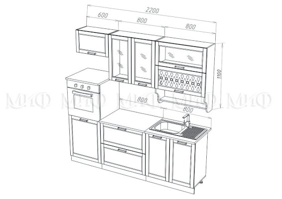 Высота верхних шкафов: 736 мм