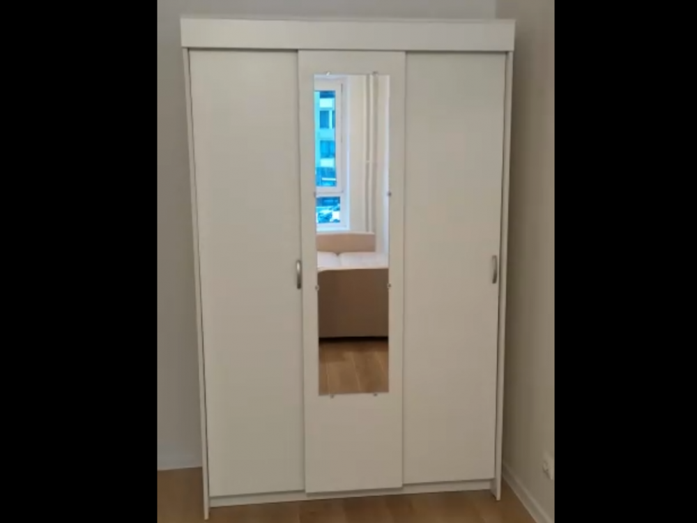 Хороший шкаф за свои деньги. Собрали довольно быстро, но так и не поняли что не так с креплениями для дверей: если делать четко по отверстиям, то дверь не встанет. В итоге прикрутили не на все болты, которых кстати не хватило бы в комплекте. Так же не самое простое и надежное крепление зеркала, решили вообще обойтись без него. В общем за 10к рекомендую шкаф к покупке, очень вместительный и удобный, смотрится довольно прилично)